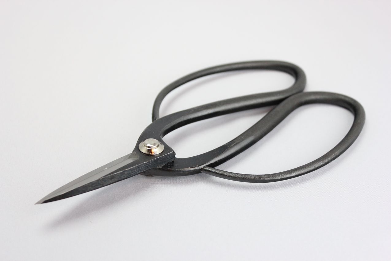 持ち手が広く、太めの枝の剪定もしっかりできる、古くから愛用されている盆栽ハサミです。